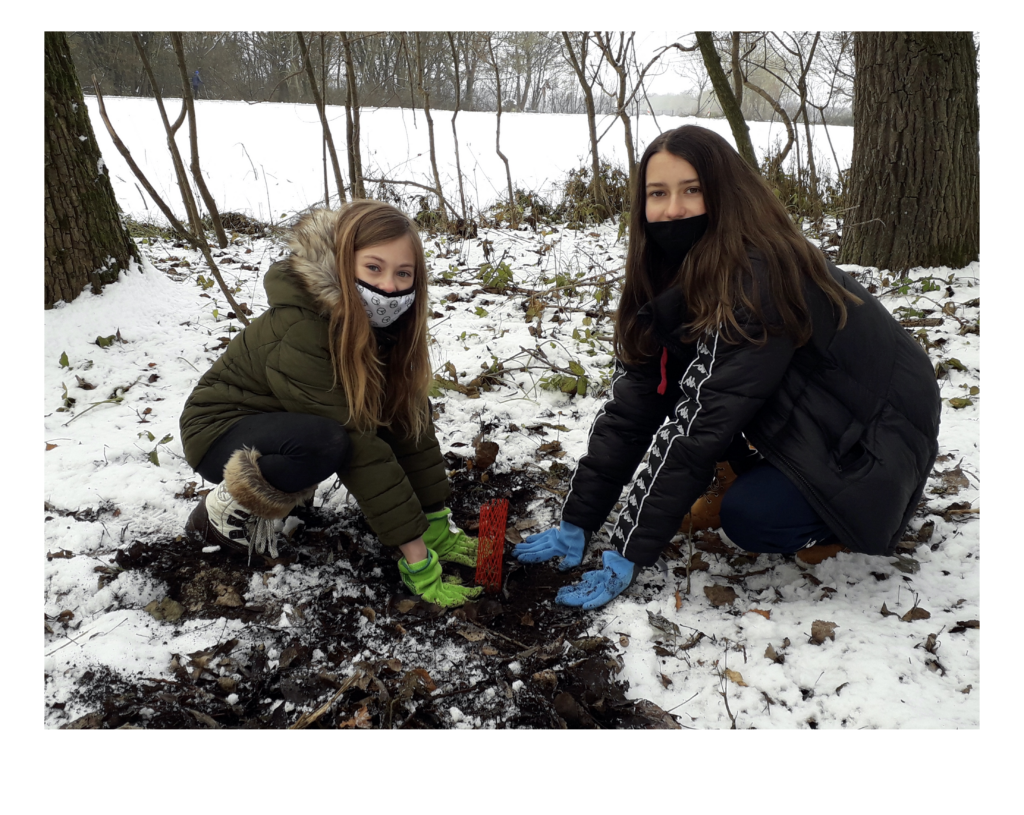 „Am 3.12. sind wir von der Schule aus an den Unterschleissheimer See gegangen. Am See angekommen, haben uns zwei Förster gleich Schaufeln und 60 kleine Bäume in die Hand gedrückt, die wir zu dem daneben liegenden Wald mitgenommen haben. Da haben wir die Bäume eingepflanzt und was ich interessant fand, war, dass um die Minibäume ein roter Draht war, der dazu diente, Rehe und andere Tiere von den Minibäumen fernzuhalten, weil Rehe und Co gerne kleine Bäume fressen.“ (Stella)