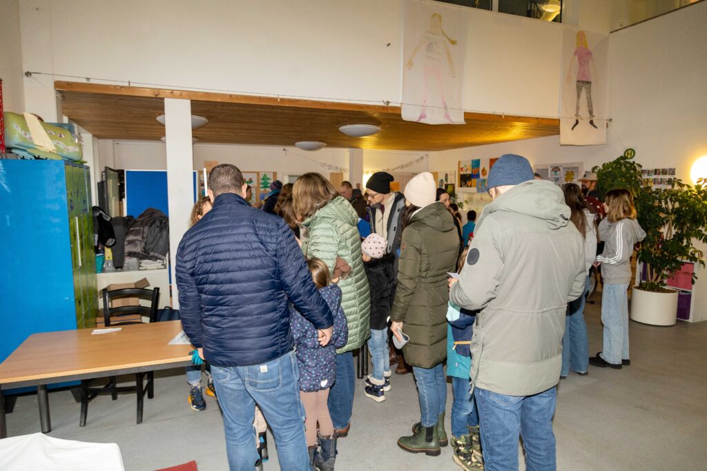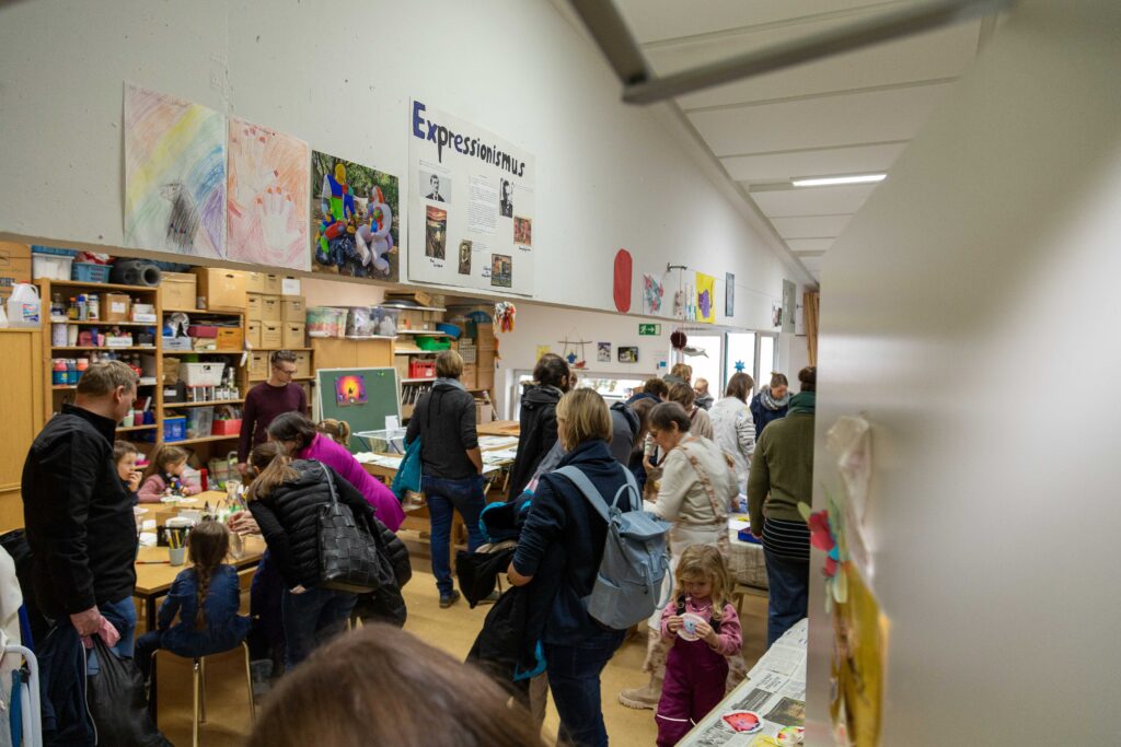 Die Mittagsbetreuung übernahm mit Spielen und Bastelangeboten die Kinderbetreuung von Vorschülern und Geschwisterkindern. Beim Bastel- und Malprojekt in unserem Werkraum konnten die Besucherkinder ebenfalls kreativ werden. Zudem gab es die Möglichkeit, sich über den geplanten Neubau zu informieren: ein Film sowohl einer 3-D Konstruktion des Raumangebots als auch ein von einem Schüler durchgeführter Drohnenflug über die Baustelle wurden gezeigt.