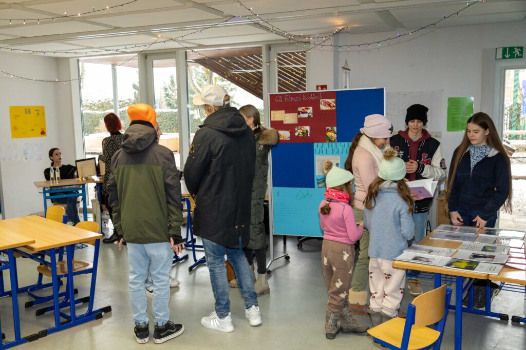 Ein ganz besonderes Highlight bestand darin, dass wir eine Gruppe an ehemaligen Schülerinnen und Schülern willkommen heißen durften, die von ihrer Schulzeit bei uns berichteten. Eine außergewöhnliche und überaus authentische Gelegenheit für die interessierten Familien, sich zu informieren und auszutauschen.