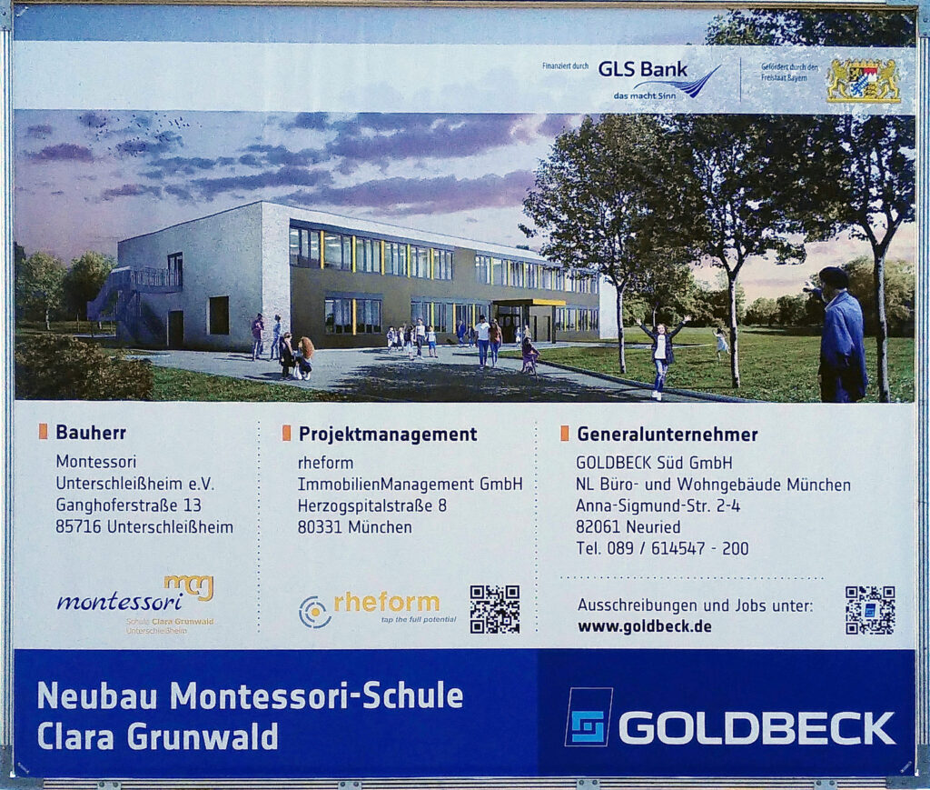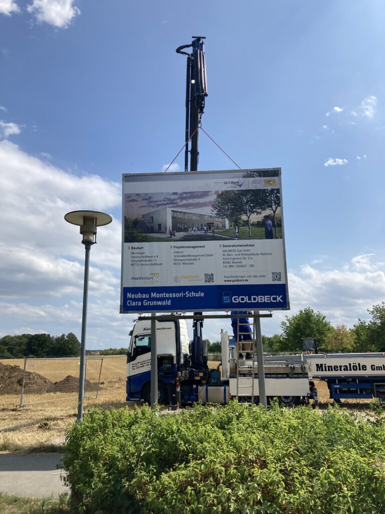 Unsere nagelneue Bautafel zeigt jetzt schon allen die vorbei kommen wie unsere neue Schule einmal aussehen wird.