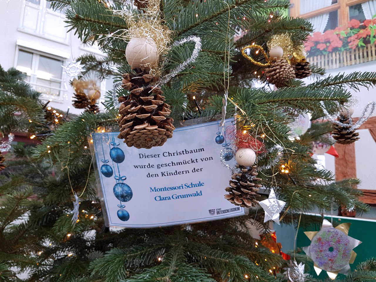 Baumschmücken auf dem Weihnachtsmarkt
