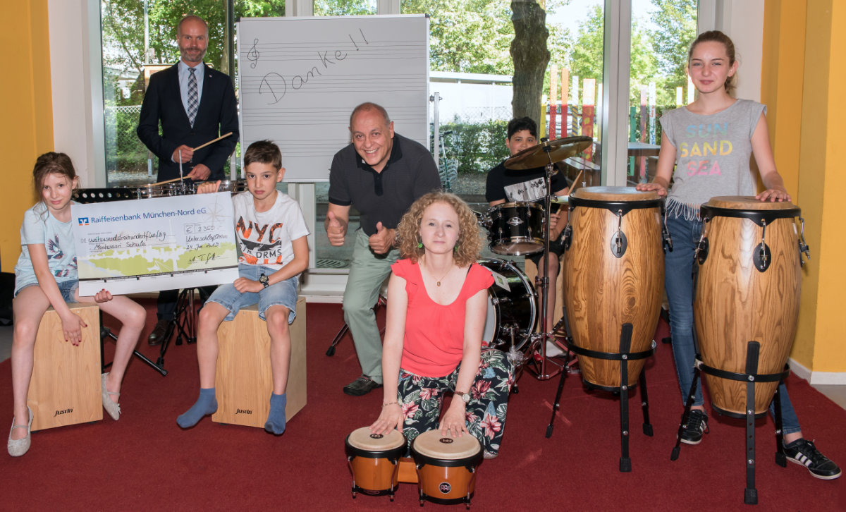 125 Jahre Raiffeisenbank München-Nord eG: Montessori Schule Clara Grunwald freut sich über neue Musikausrüstung
